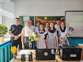 На торжественной линейке присутствовали и почетные гости – представитель от администрации Лев-Толстовского муниципального района Иноземцева Н. В., представитель от комитета по образованию Лев-Толстовского муниципального района Колпакова О. Н., глава сельского поселения Администрация Октябрьского Сельсовета Тепцов М. С., которые поздравили всех с началом нового учебного года и пожелали успехов в учебе и мирного неба над головой.